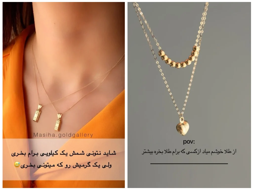 این ایده فوقالعاده تعاملسازه! دو مدل طلا را کنار هم بگذار و از مخاطب بپرس:
