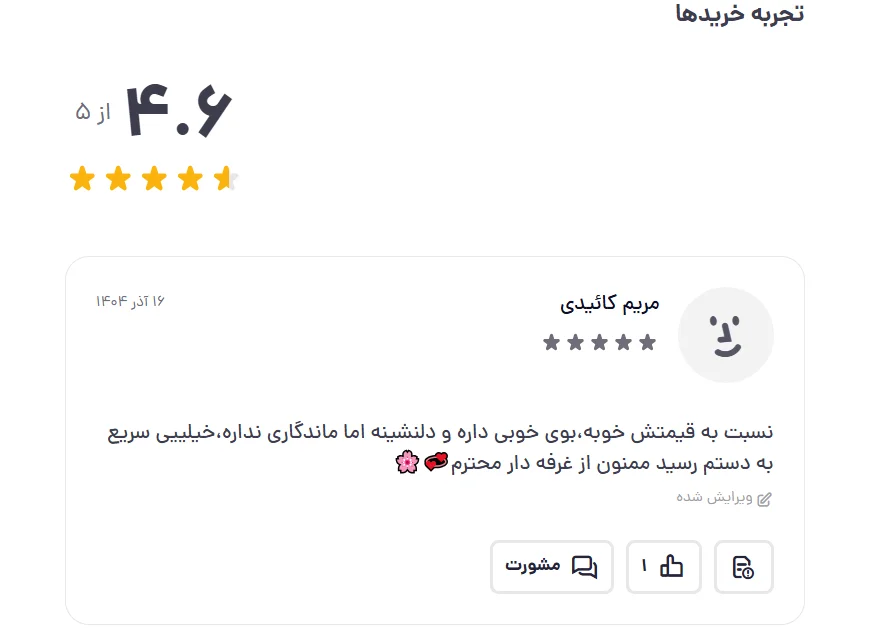 «امیدوارم محصول مورد پسندتون باشه. اگر از کیفیت راضی بودید، خوشحال میشم نظرتون رو ثبت کنید.»
