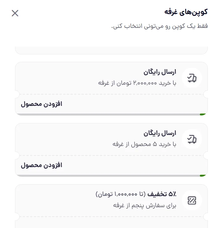 مثلا:«کد تخفیف ۱۰ درصد برای خرید دوم» یا «ارسال رایگان برای مشتریهای قدیمی»